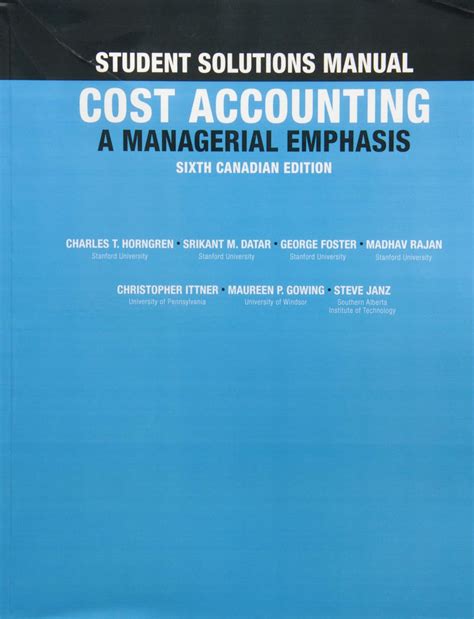 Read Online Student Solutions Manual for Cost Accounting: A Managerial Emphasis, Sixth Canadian Edition Paperback ManyBooks
